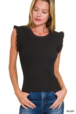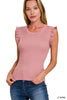 Experience ultimate style and comfort with our Dahlia Viscose Ruffle Trim Knit Top. Crafted from soft viscose fabric, this top features a chic ruffle trim and a ribbed design for a flattering and trendy look. Perfect for any occasion, this top will elevate your wardrobe and keep you feeling stylish all day long.