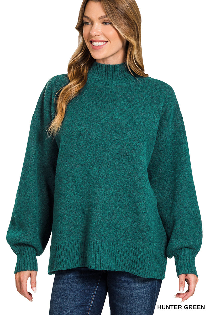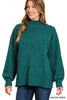 Rich in color and cozy in feel, the Emerald Haven Sweater is your statement piece for cool-weather days. Designed with a sleek mock neck and voluminous balloon sleeves, it strikes the perfect balance between modern chic and effortless comfort. The soft knit blend—with just a hint of wool and stretch—makes it warm yet breathable, ideal for layering or wearing on its own. Pair it with denim for a casual vibe or a skirt for an elevated look.