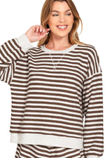 Classic stripes meet modern ease in the Harbor Stripe Pullover. Designed with a stitched V-neck detail and a relaxed fit, this cozy piece is perfect for layering or wearing solo. Its timeless pattern makes it an easy grab for casual weekends, seaside escapes, or everyday wear with denim. A versatile essential that never goes out of style.