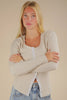 Meet the Soft Edge Knit Top—your not-so-basic basic. This fitted button-down knit brings effortless style with its round neckline, long sleeves, and flattering rounded hem. The raw edge detail adds just the right amount of laid-back cool, making it perfect for casual days when you still want to look put together.