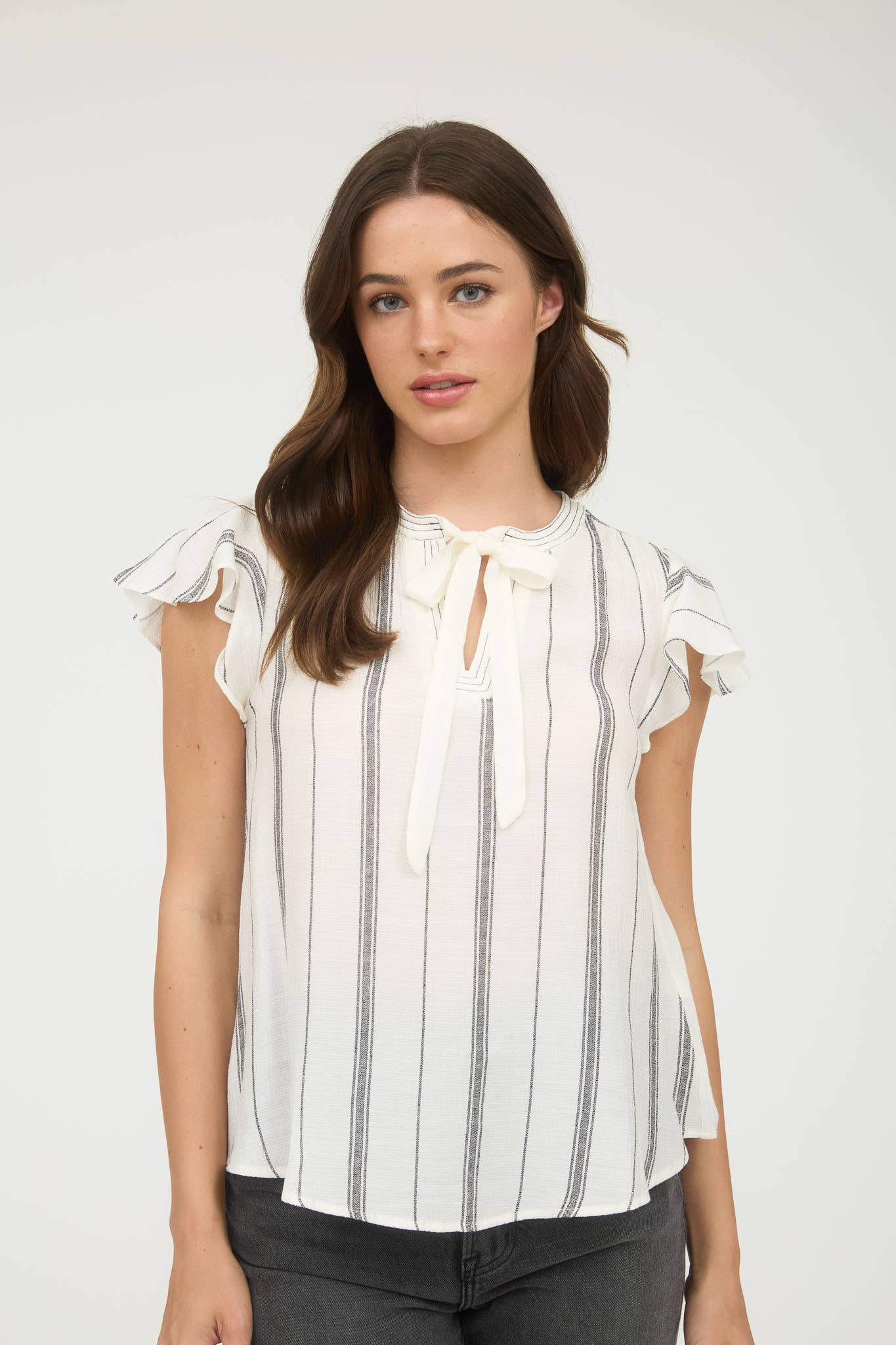 Inspired by sun-washed seaside towns, The Portofino Stripe Blouse pairs a flattering V-neck with a wide-strap front tie for soft movement. A tailored back yoke ensures a polished fall, while the lightweight woven fabric and short sleeves make it easy all day. Unlined and relaxed, it layers beautifully with denim, linen, or a swishy skirt.