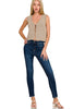 This sweater vest is giving off major cool-girl energy with its 3 hook-and-eye front closure and soft knit blend (60% polyester, 40% acrylic). Wear it closed for that fitted, minimal look or keep it slightly undone for a relaxed vibe. Either way, it’s one of those pieces that’s comfy but still looks like you actually tried.